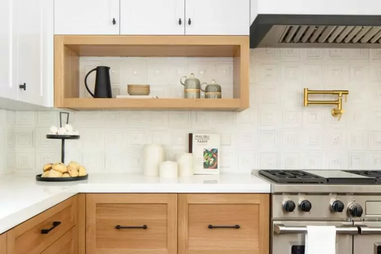 Mixing metals can create a warm, layered, and storied look in your home. The trick, however, is to mix metals that are in line with the overall style of your kitchen. If you have a traditional kitchen, avoid chrome faucets and chrome hardware. Mixing an aged brass faucet with dark bronze hardware, or vice versa, is a lovely combination.